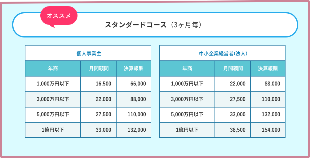 - ✔ 税理士とアソシエイトでの複数担当制だからいつでも相談可能!